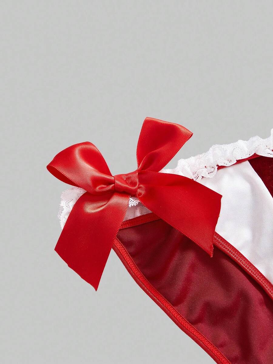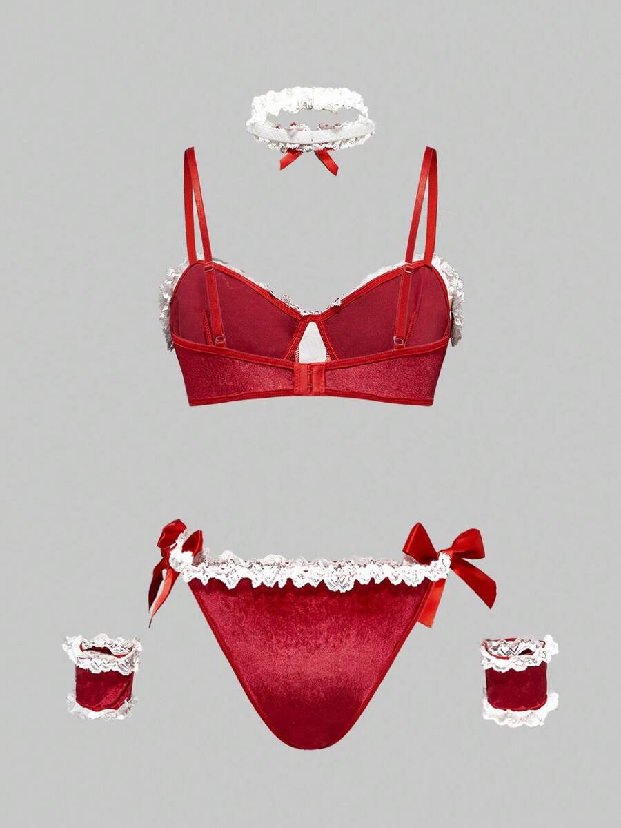 ROMWE Avant 5pcs Women's Christmas Bra, Thong, Collar, Bracelet Intimate Lingerie Set
