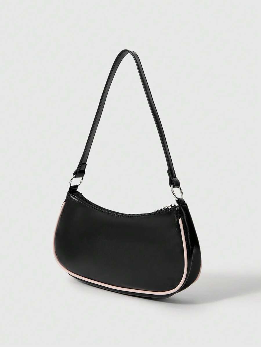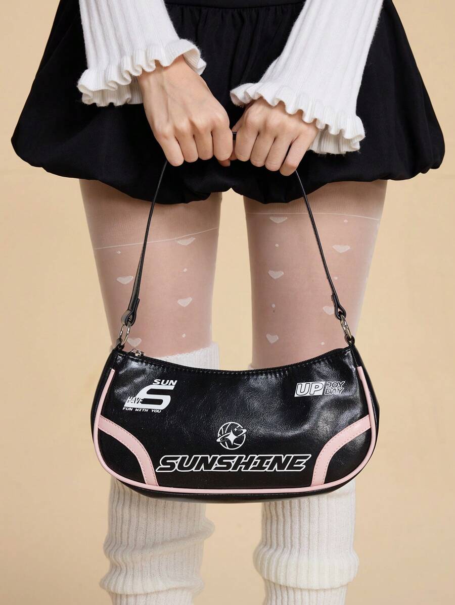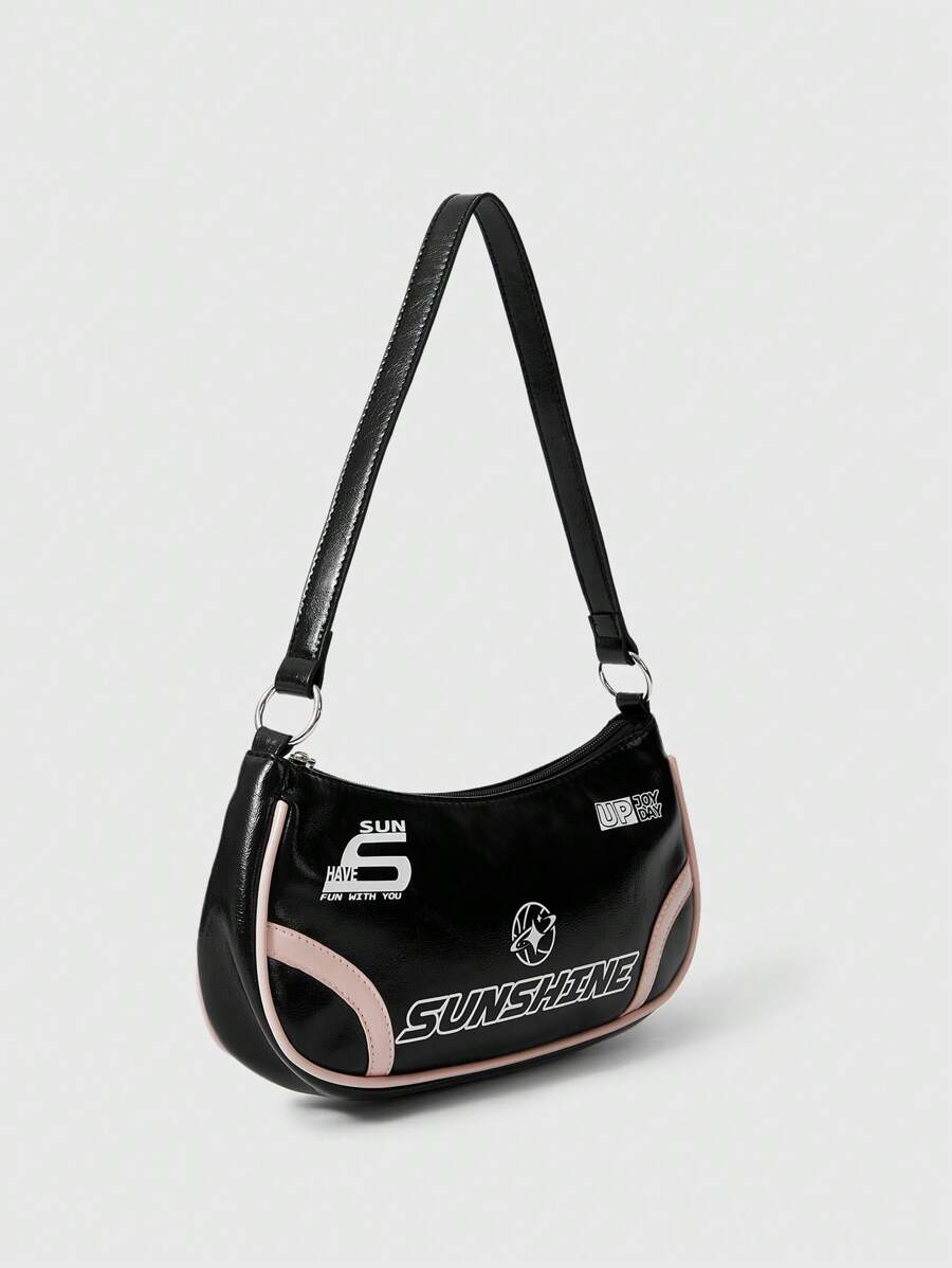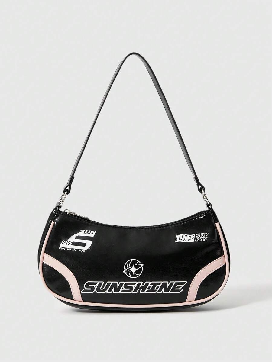 ROMWE Avant Black & Pink Color Block 'Sunshine' Print Athleisure Ballet Style Shoulder Bag