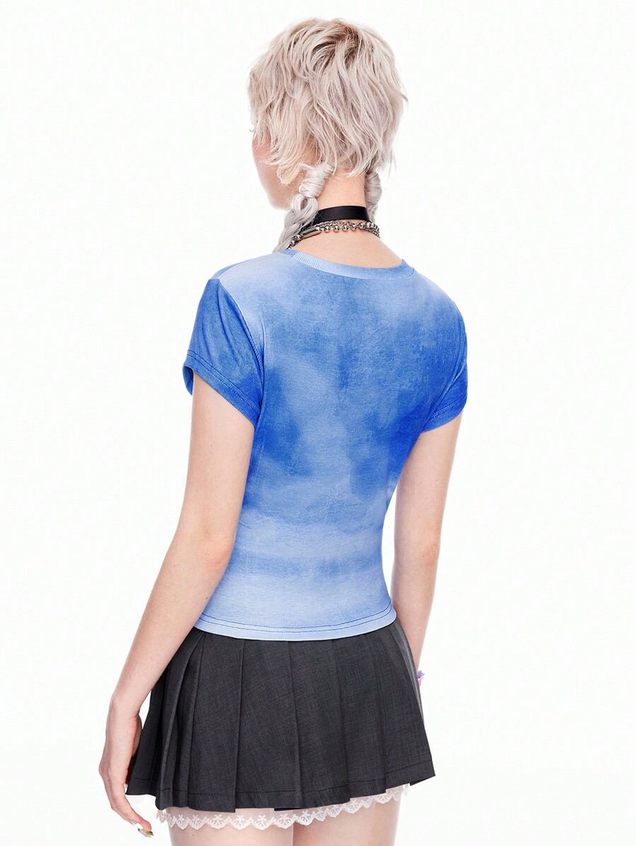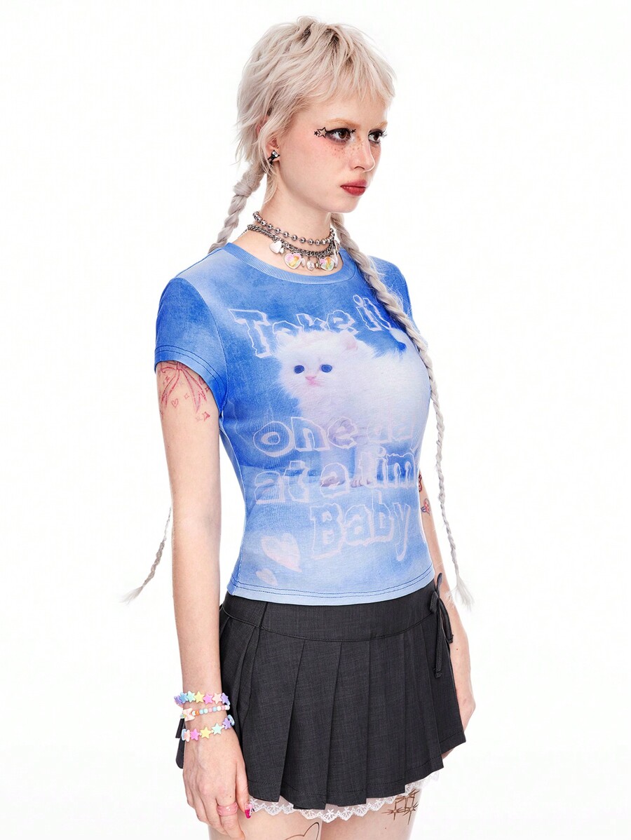 ROMWE Avant Cute Cat Digital Print Casual College Style Women Short Sleeve T-Shirt