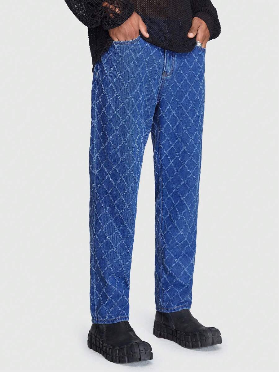 ROMWE Avant Guys Argyle Print Straight Leg Jeans
