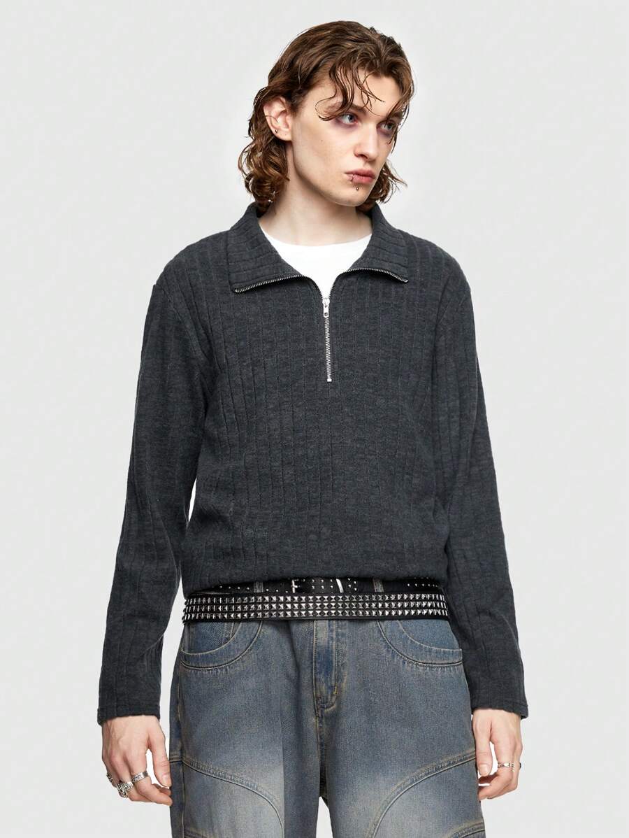 ROMWE Avant Men Solid Color Ribbed Knit T-Shirt