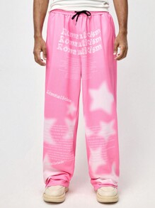 ROMWE Avant Men Star & Slogan Print Drawstring Waist Sweatpants, School