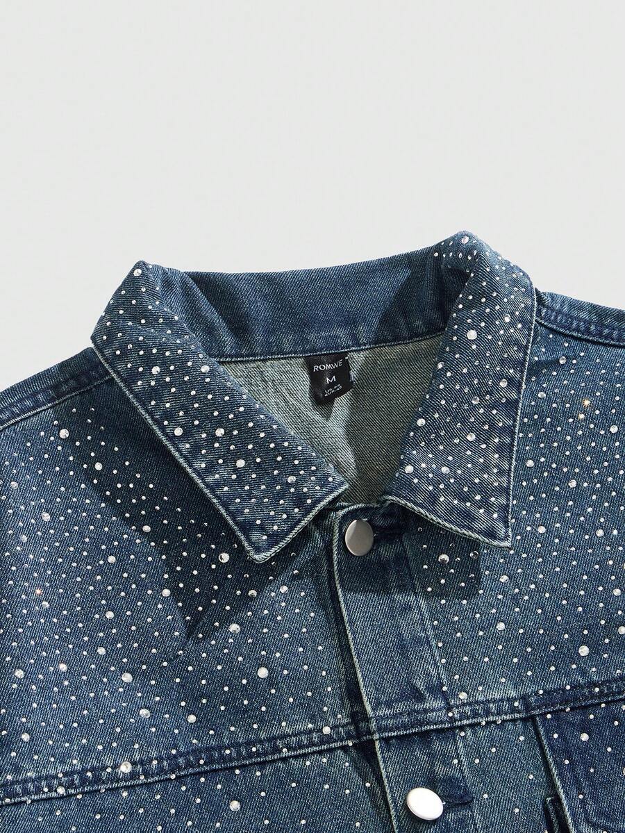 ROMWE Avant Men's Casual Fashionable Rhinestone Denim Short Sleeve Top
