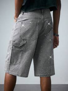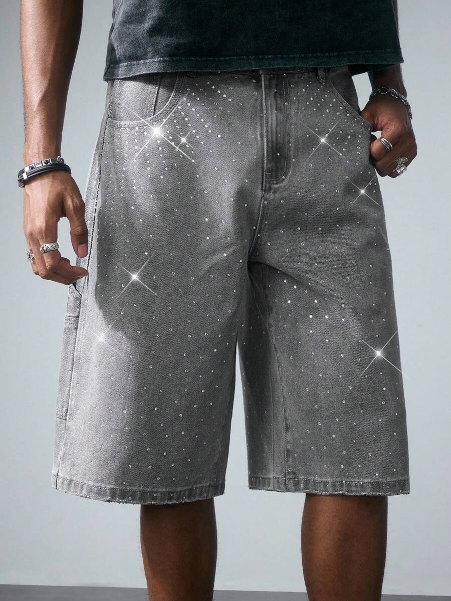 ROMWE Avant Men's Fashionable Rhinestone Decor Denim Shorts, Summer