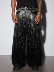 ROMWE Avant Men's Sparkling Diamond Loose Baggy Jeans