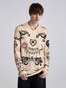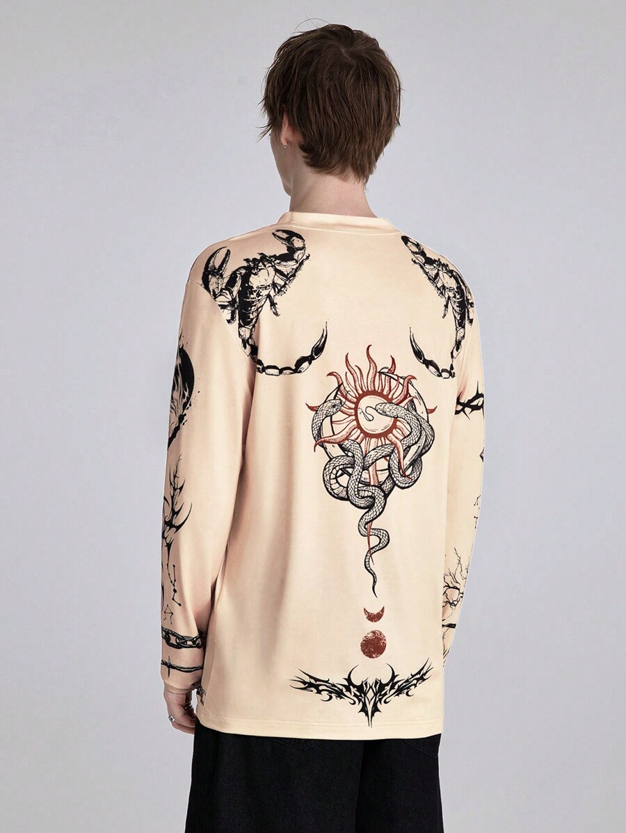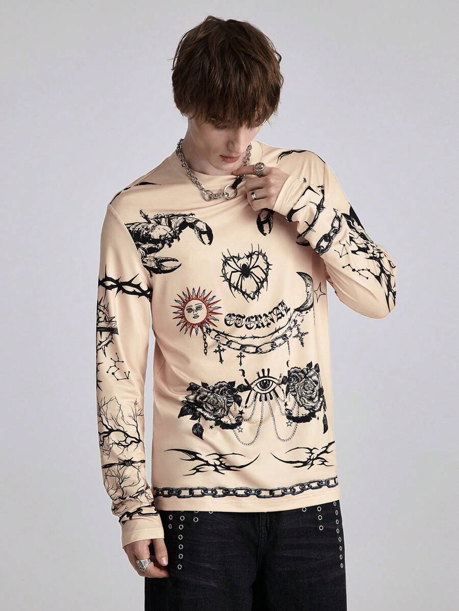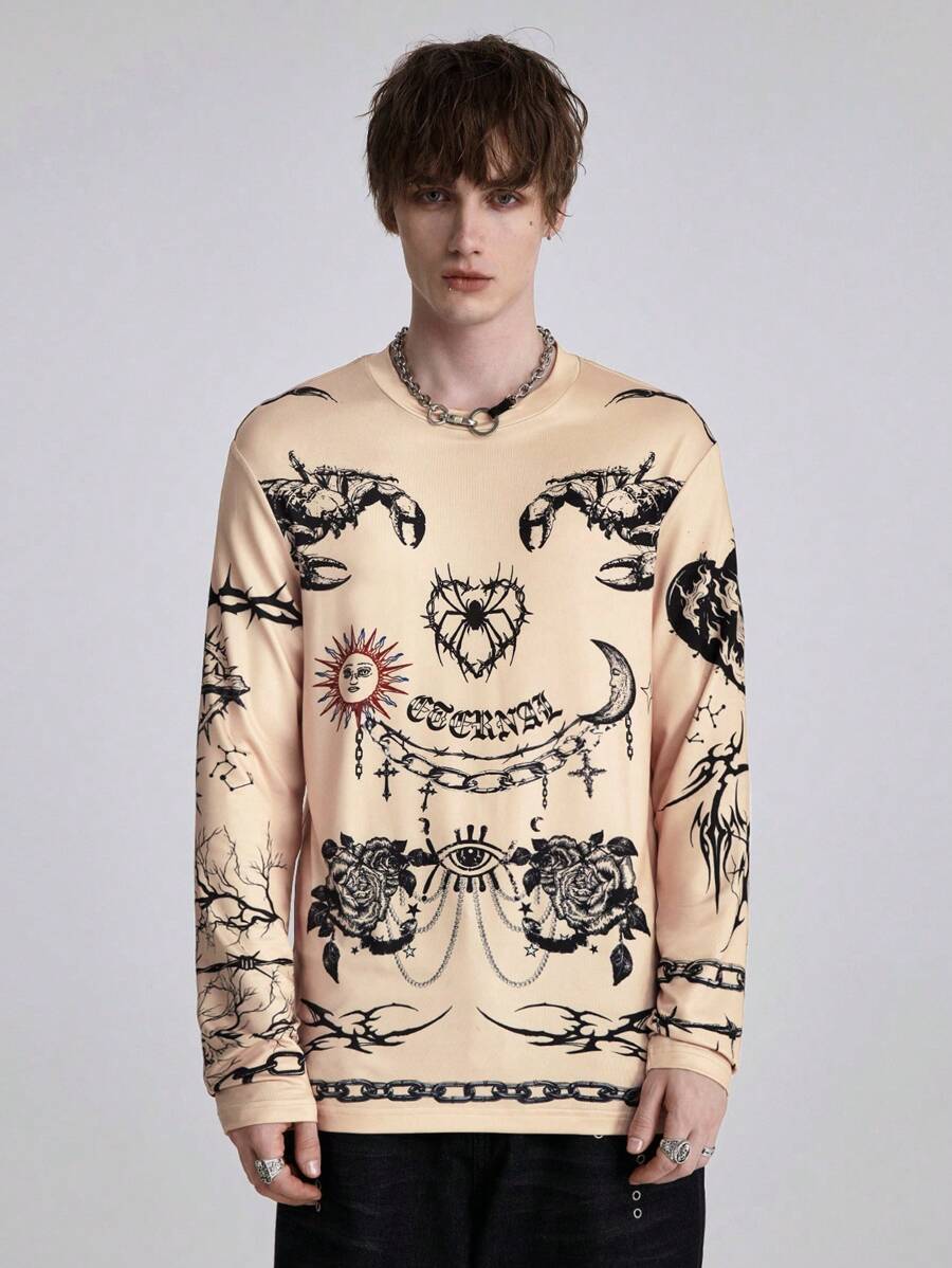 ROMWE Avant Men's Spring/Summer Eye Printed Round Neck Long Sleeve Casual T-Shirt
