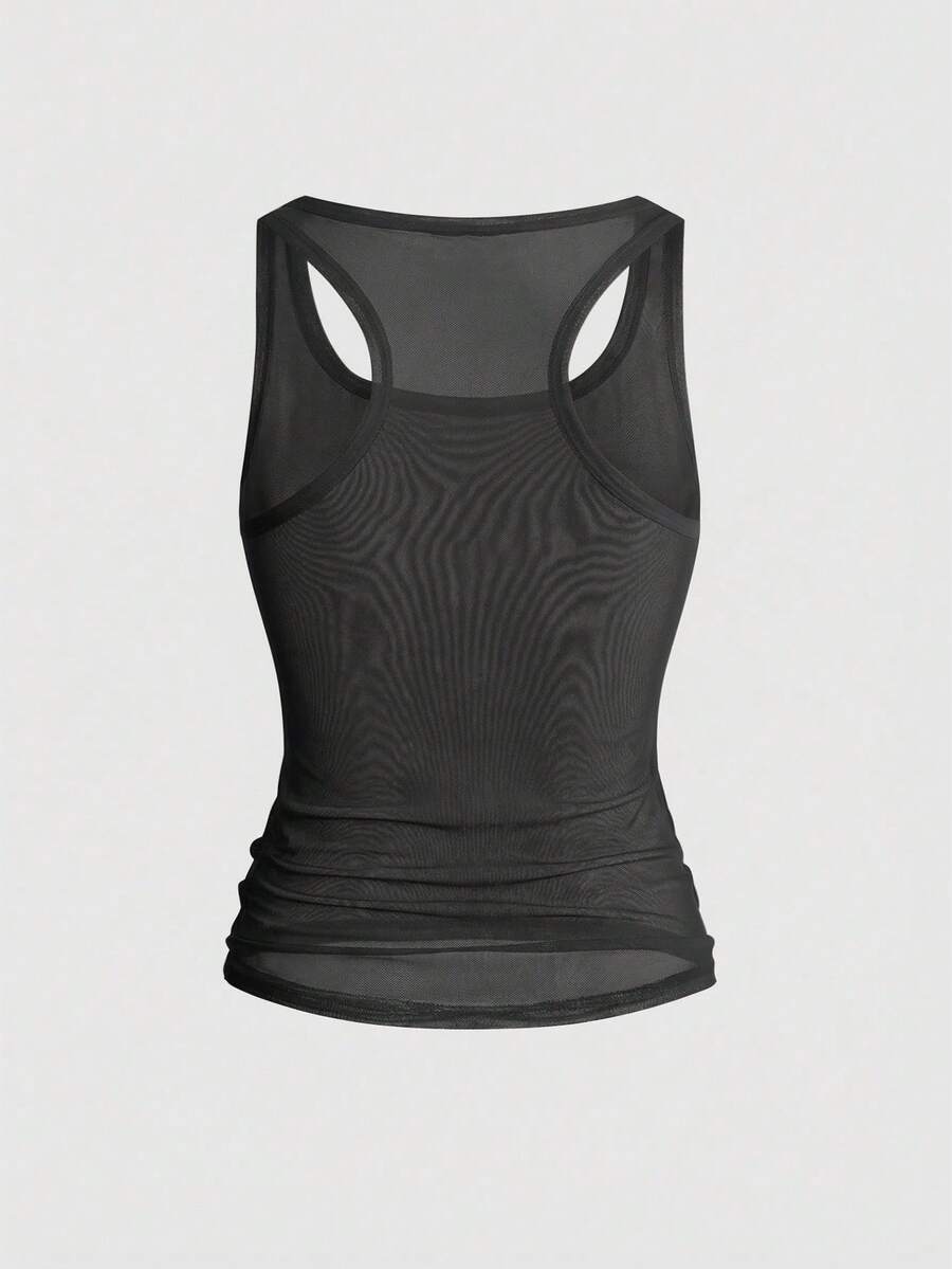 ROMWE Avant Music Festival Black Sheer Flag Cross Midriff Sexy Mesh Tank Top For Women