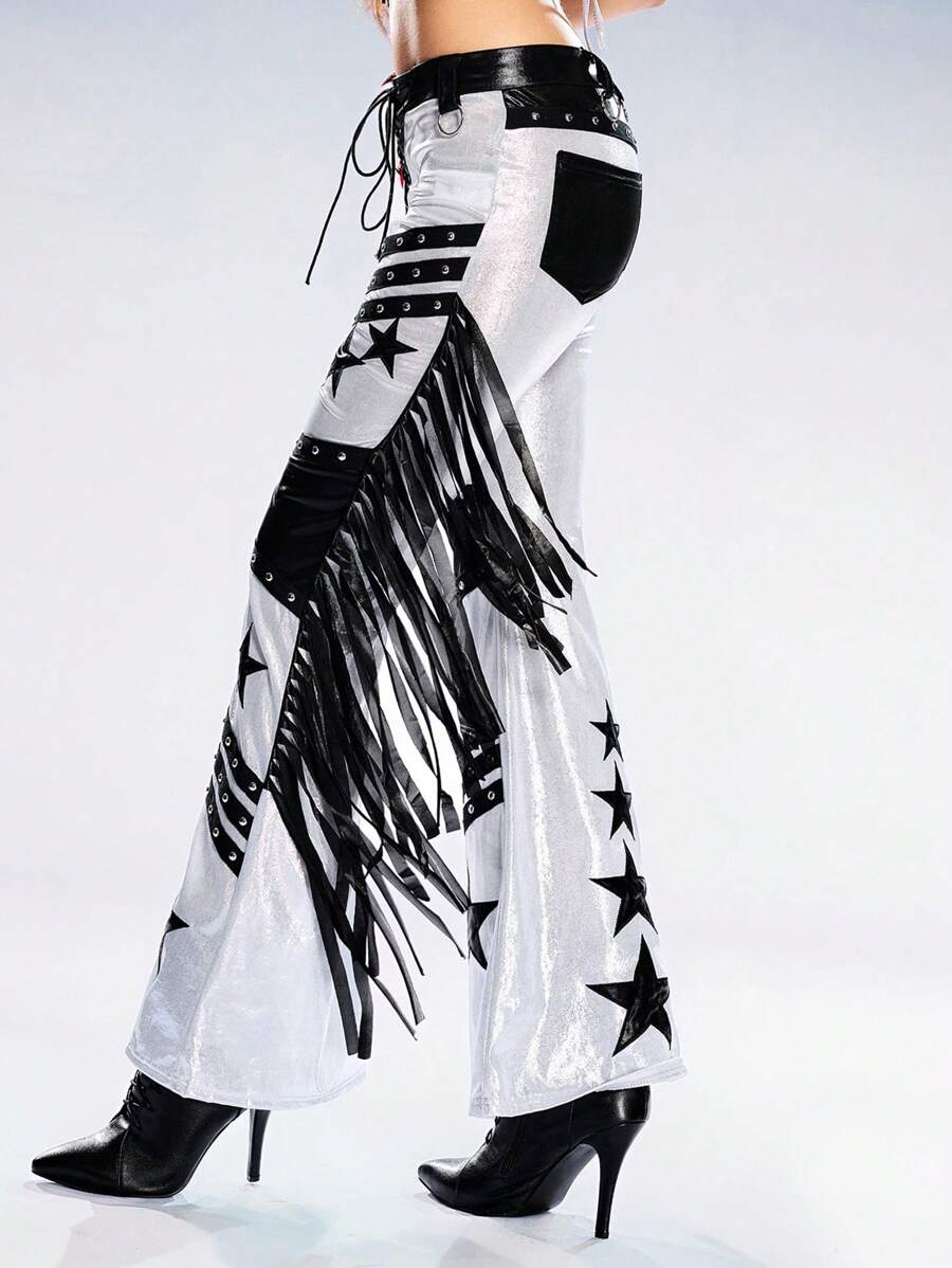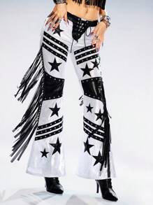 ROMWE Avant Music Festival Embroidered Star With Tassel Decor Low Waist Women's Pants