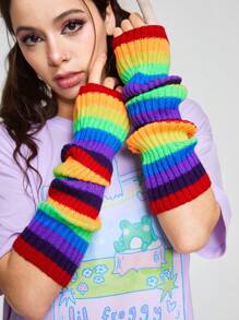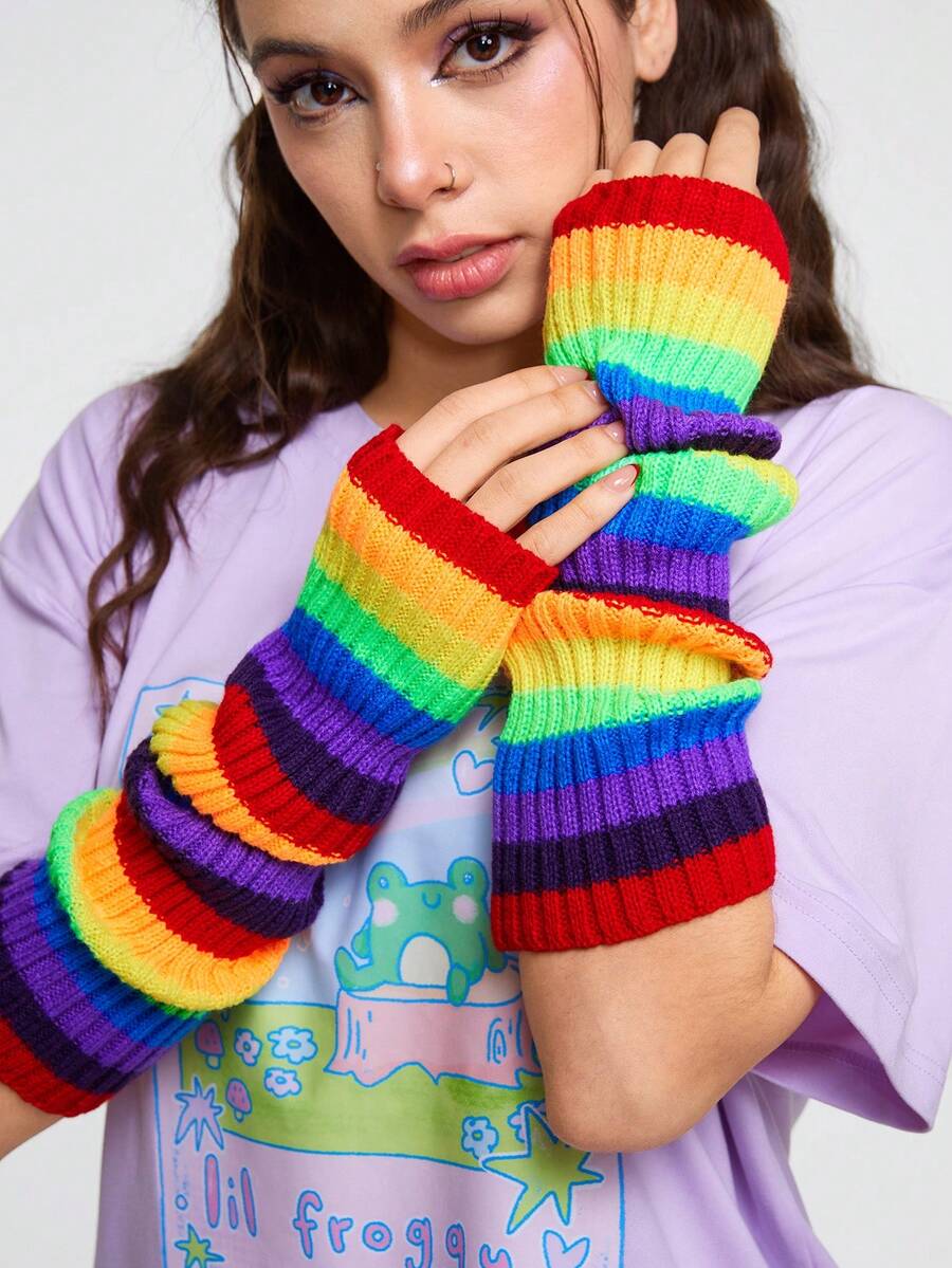 ROMWE Avant Women's Rainbow Knitted Arm Warmers