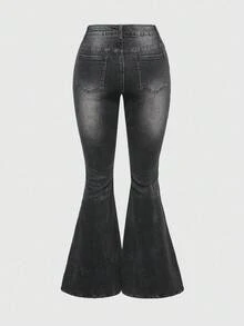 ROMWE Avant Women's Retro Hippie Sun Moon Star Embroidered Skinny Flare Jeans