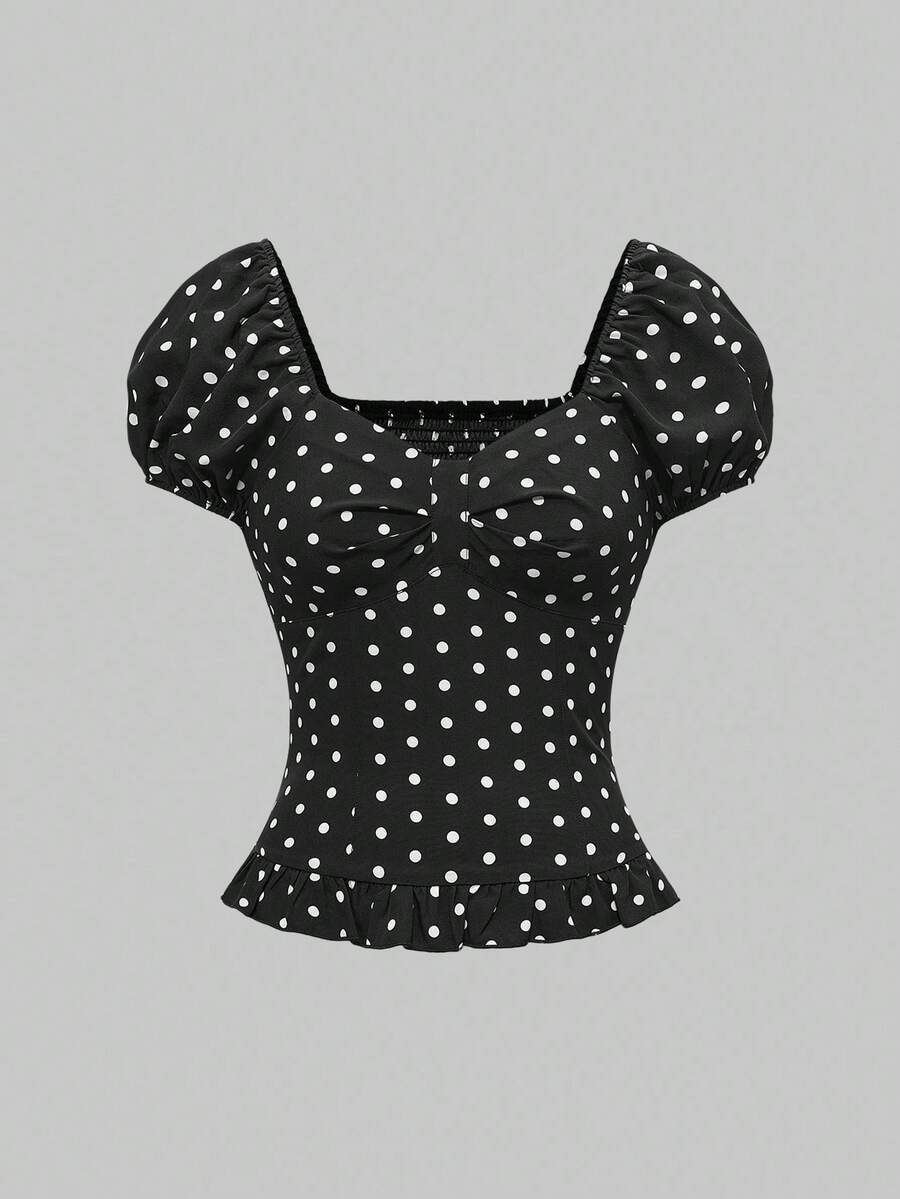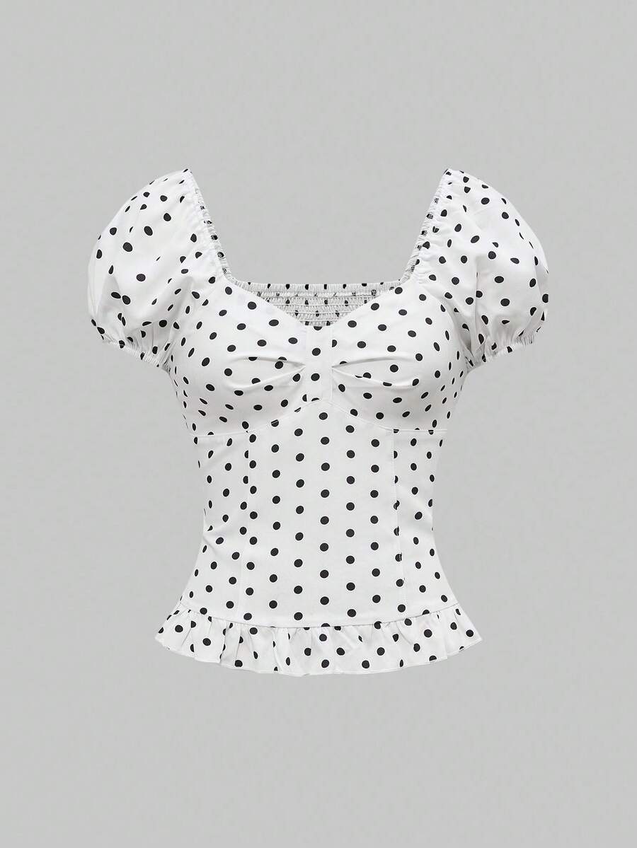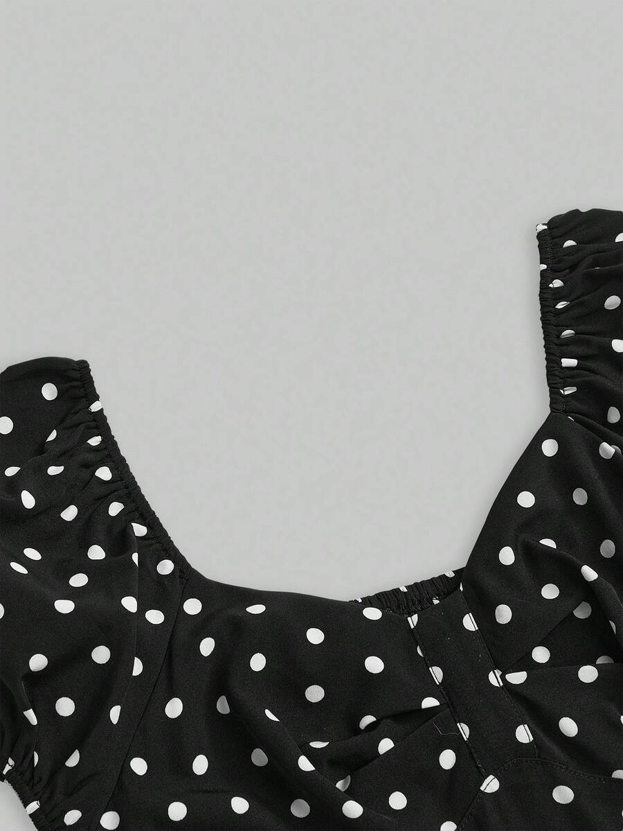 ROMWE Avant Women's Romantic Vacation Polka Dot & Plaid Backless Halter Multi-Piece Blouse
