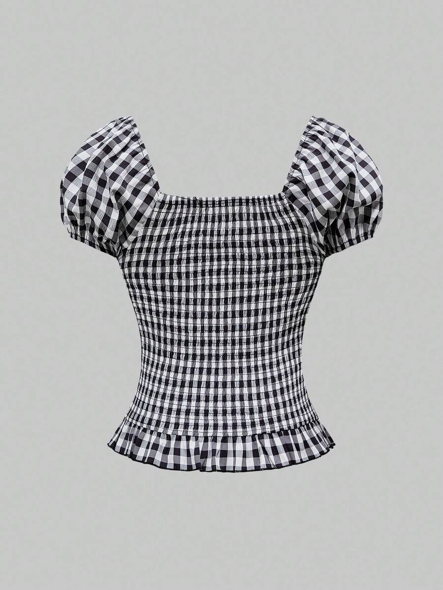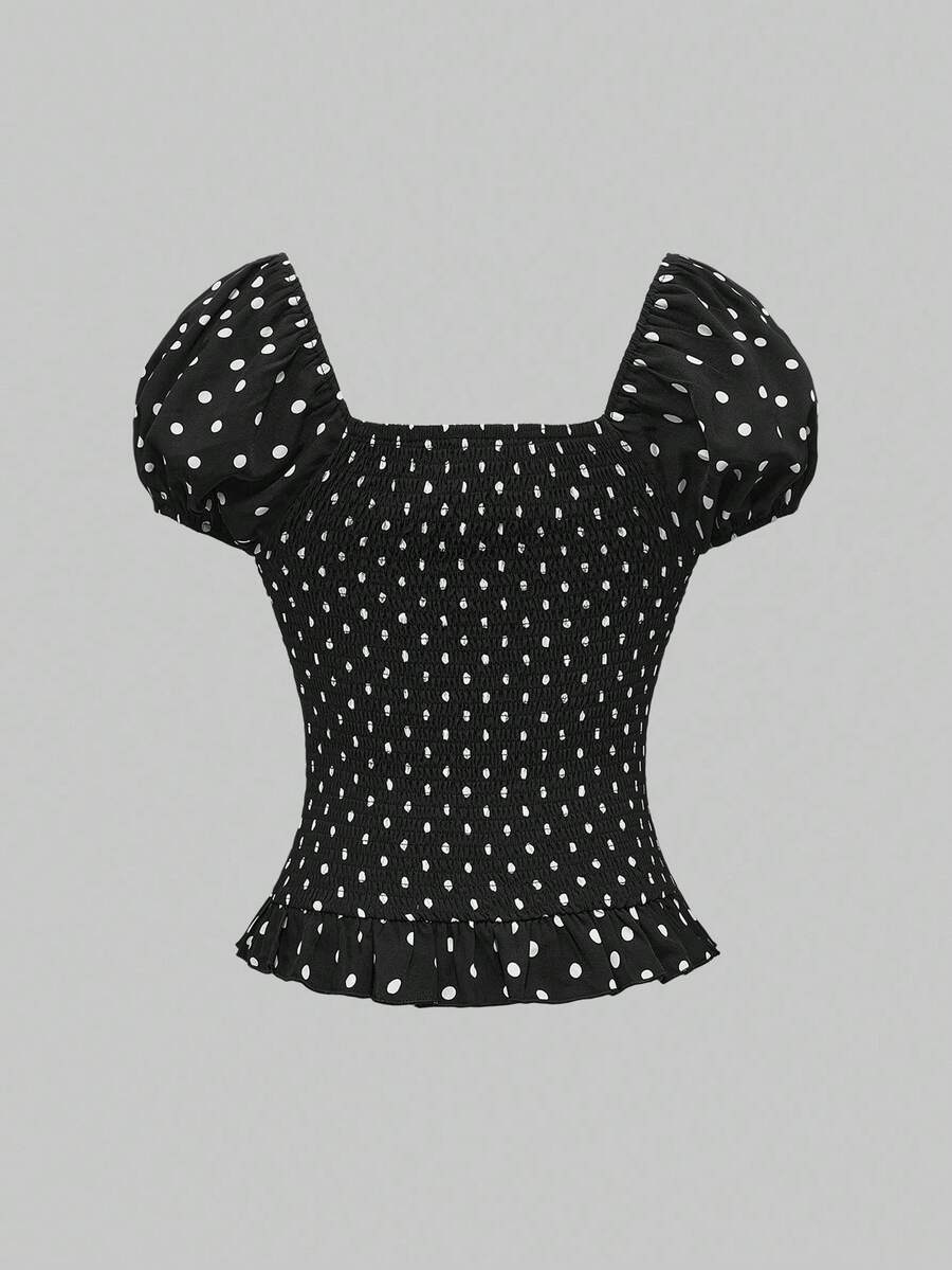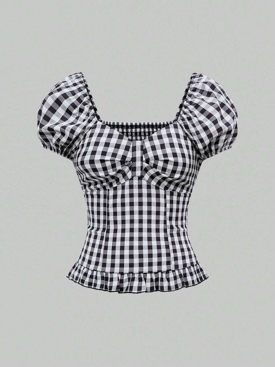 ROMWE Avant Women's Romantic Vacation Polka Dot & Plaid Backless Halter Multi-Piece Blouse