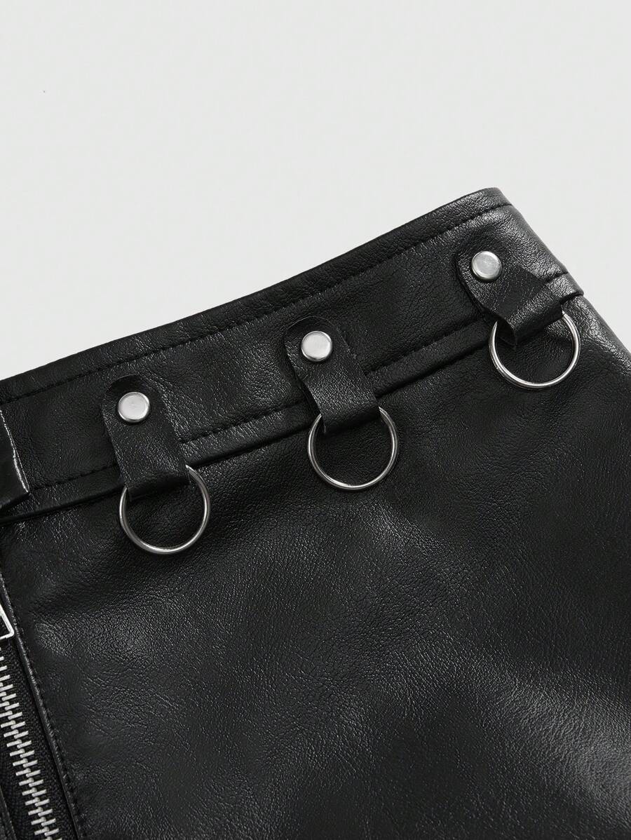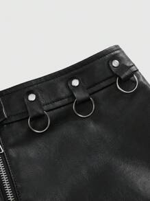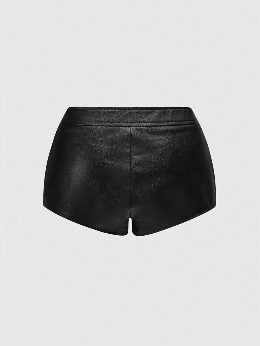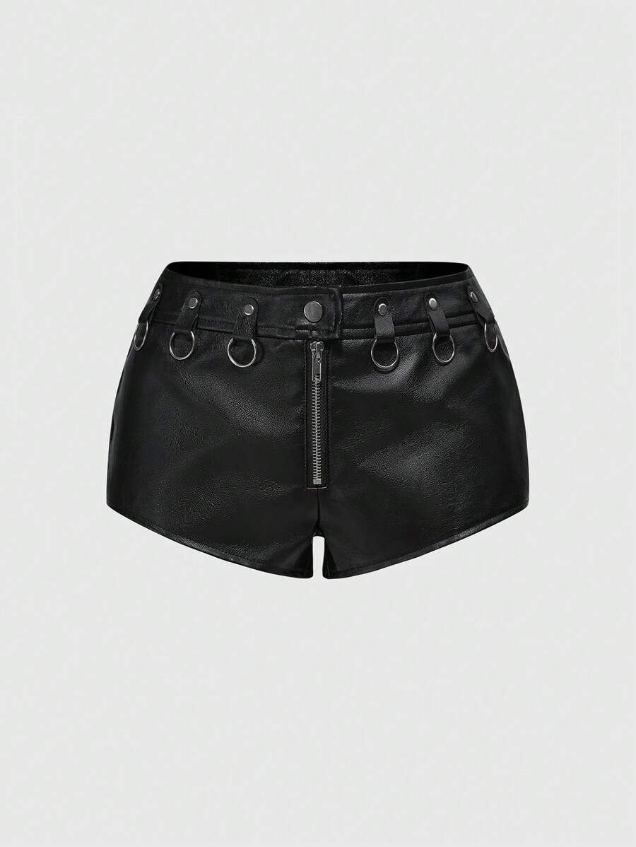 ROMWE Avant Women's Sexy Punk Goth Rivet & Ring Decorated Ultra-Short Mini PU Leather Low-Waist Shorts, Black