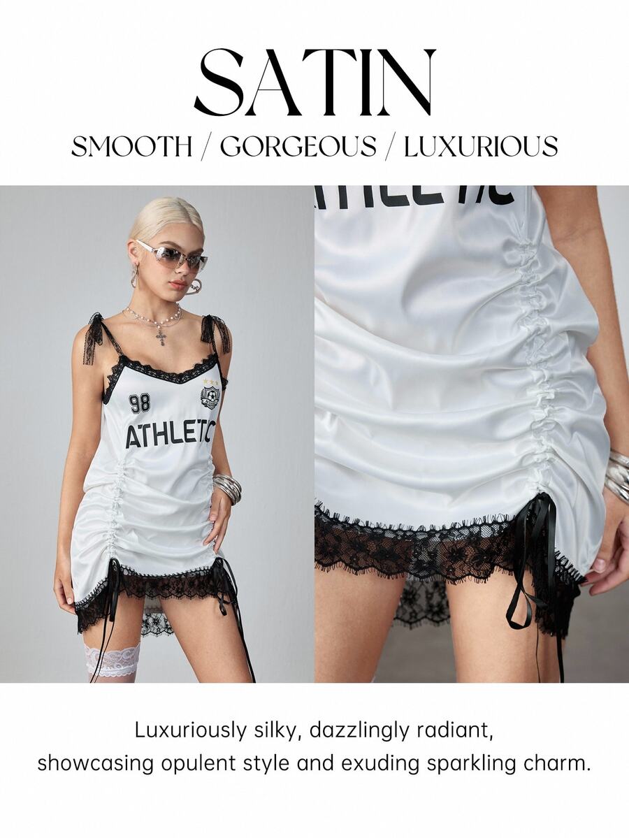 ROMWE Avant Y2K Lace Trim Drawstring Cropped Hoodie Dress For Women