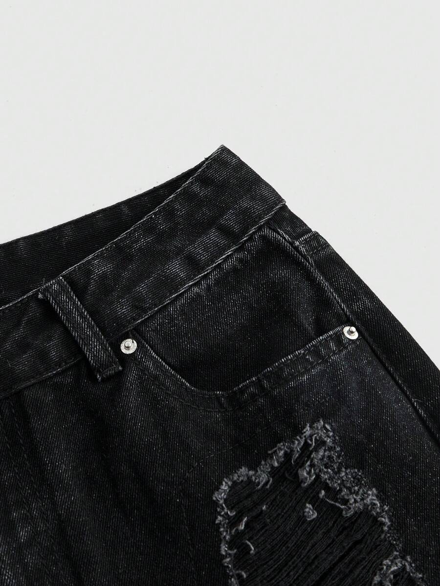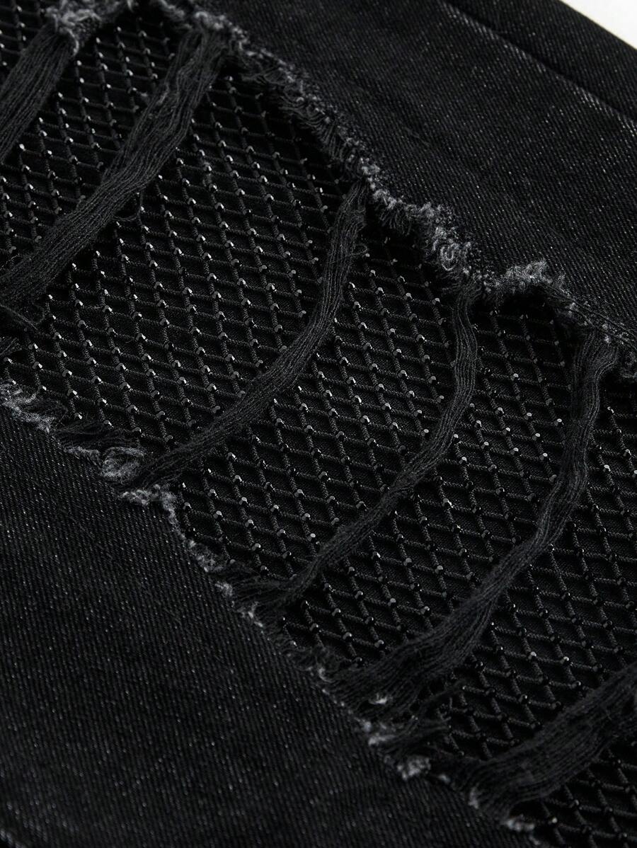 ROMWE Avant Y2K Rhinestone Studded Fishnet Ripped Hollow Out Straight Leg Jeans