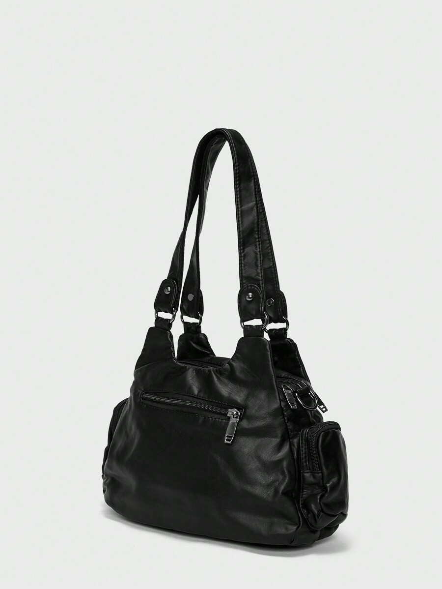 ROMWE Avant Zipper & Studded Decor Braided Detail Shoulder Tote Bag, Rock Style Bag For Women