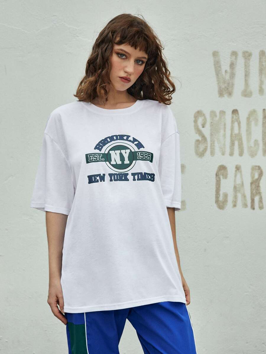 ROMWE UNISEX 1pc Letter Graphic Tee & 1pc Contrast Piping Pants