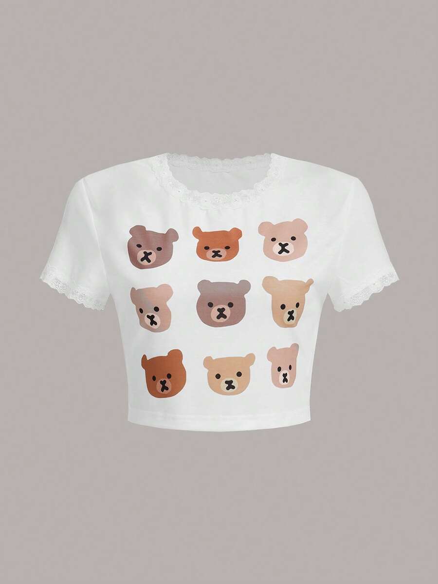 Alice Bear Print Lace Trim Tee