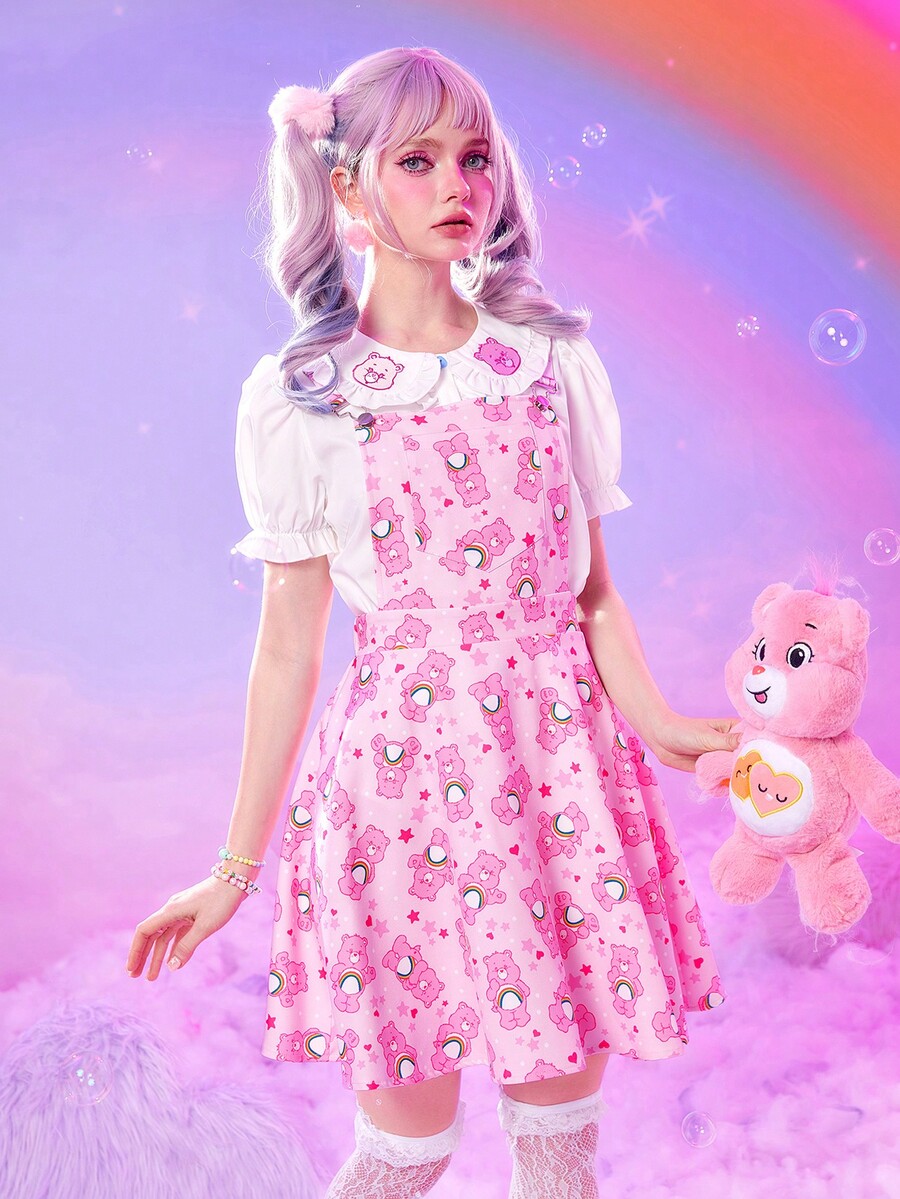 ROMWE X Care Bears Cartoon Graphic Overall Dress