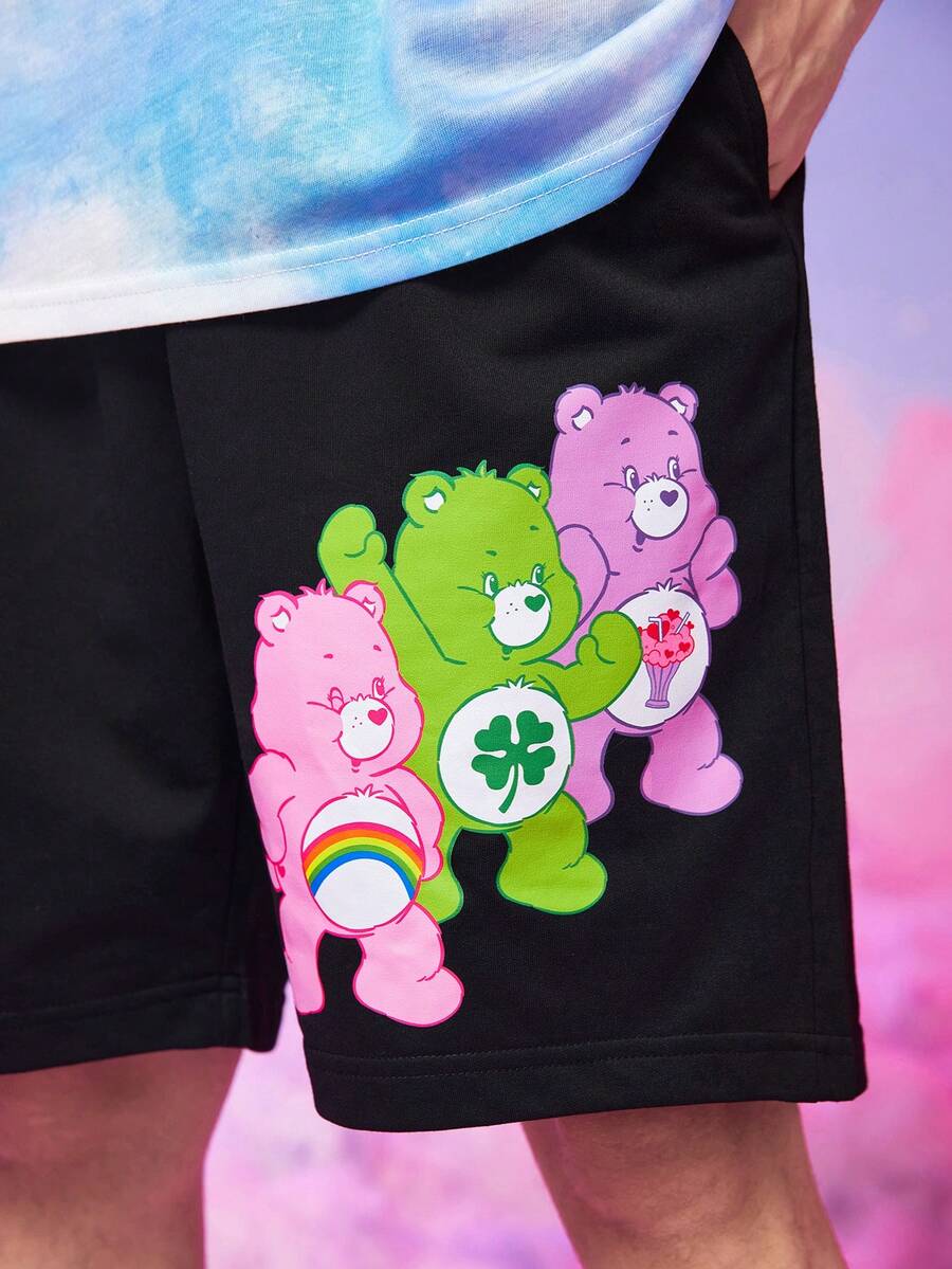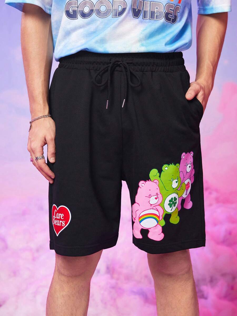 ROMWE X Care Bears Guys Cartoon Graphic Drawstring Waist Shorts