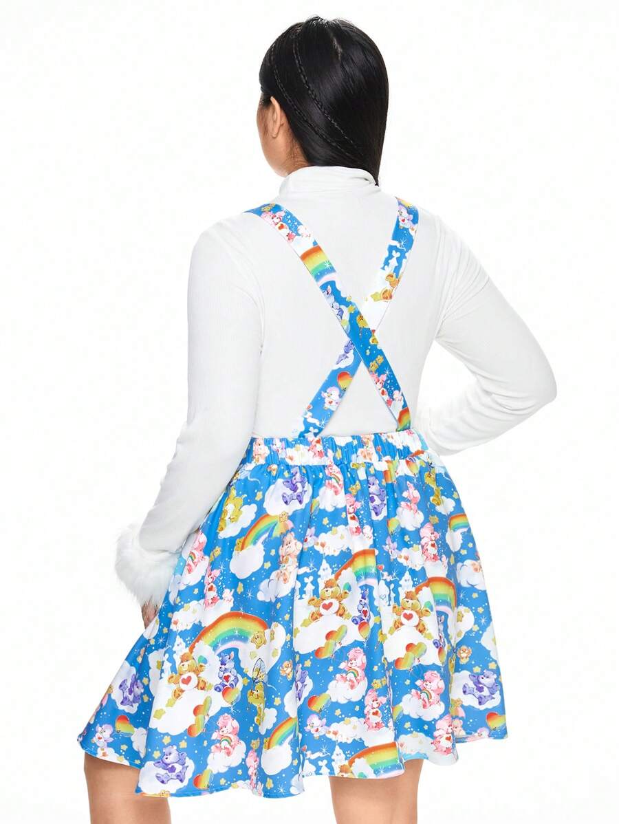 ROMWE X Care Bears Plus Size Casual Cute Cartoon Bear And Rainbow Print Pinafore Dress Without Tee