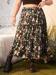 Inna Moreva Fairycore Plus Mushroom Print Ruffle Hem Skirt