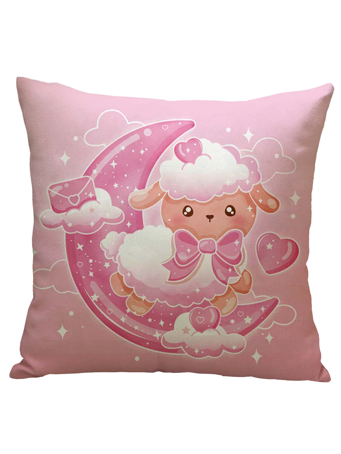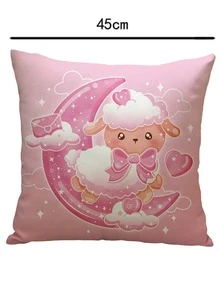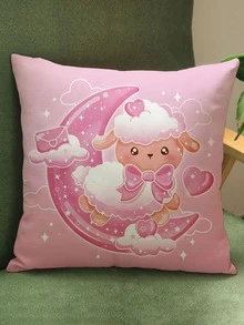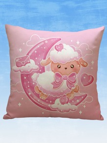 JullDiaz 1pc Cartoon Sheep & Moon Print Cushion Cover Without Filler
