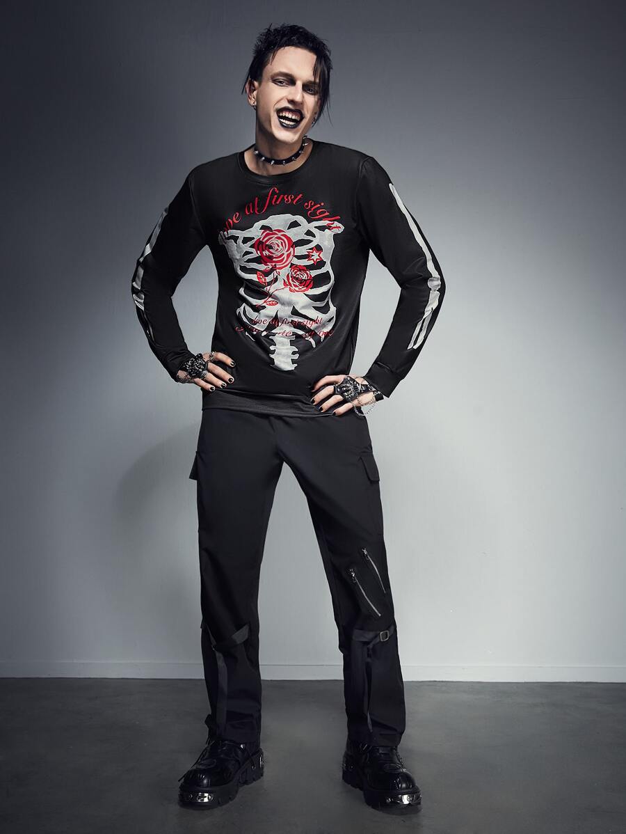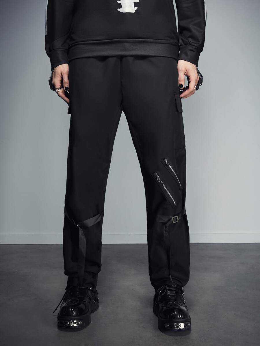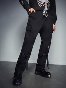 Goth Guys Flap Pocket Drawstring Waist Cargo Pants
