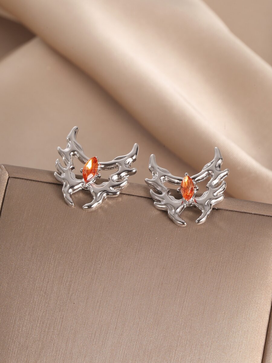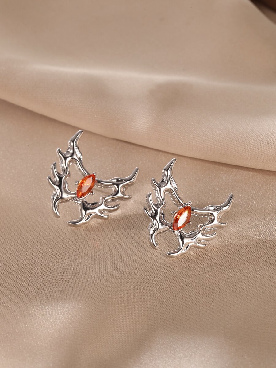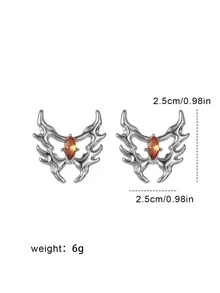 Goth Rhinestone Decor Wing Design Stud Earrings