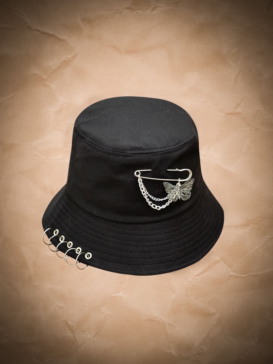 Grunge Punk Kpop Butterfly & Chain Decor Bucket Hat