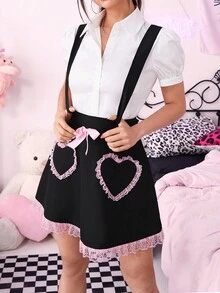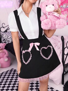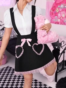 Kawaii Heart Lace Bow Front Overall Skirt Without Blouse