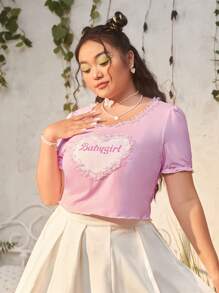 Kawaii Plus Heart & Letter Graphic Lace Trim Tee