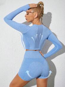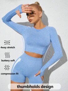 Raglan Sleeve Sports Top With Thumb Holes & Biker Shorts
