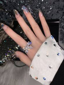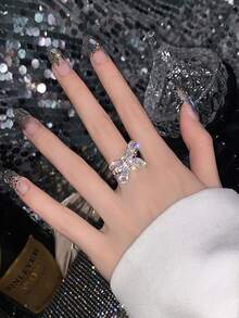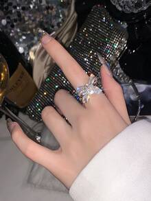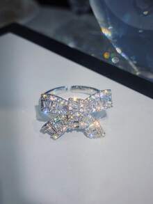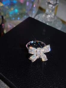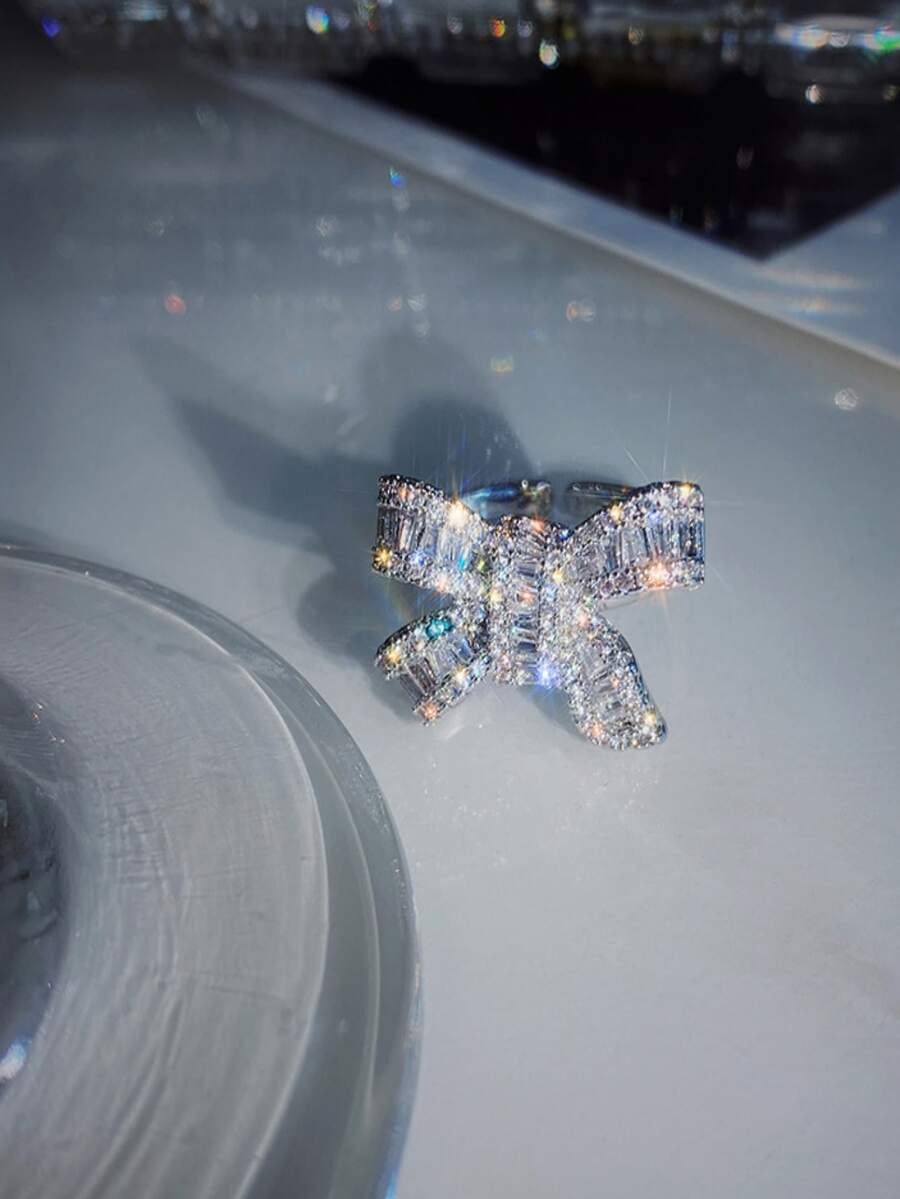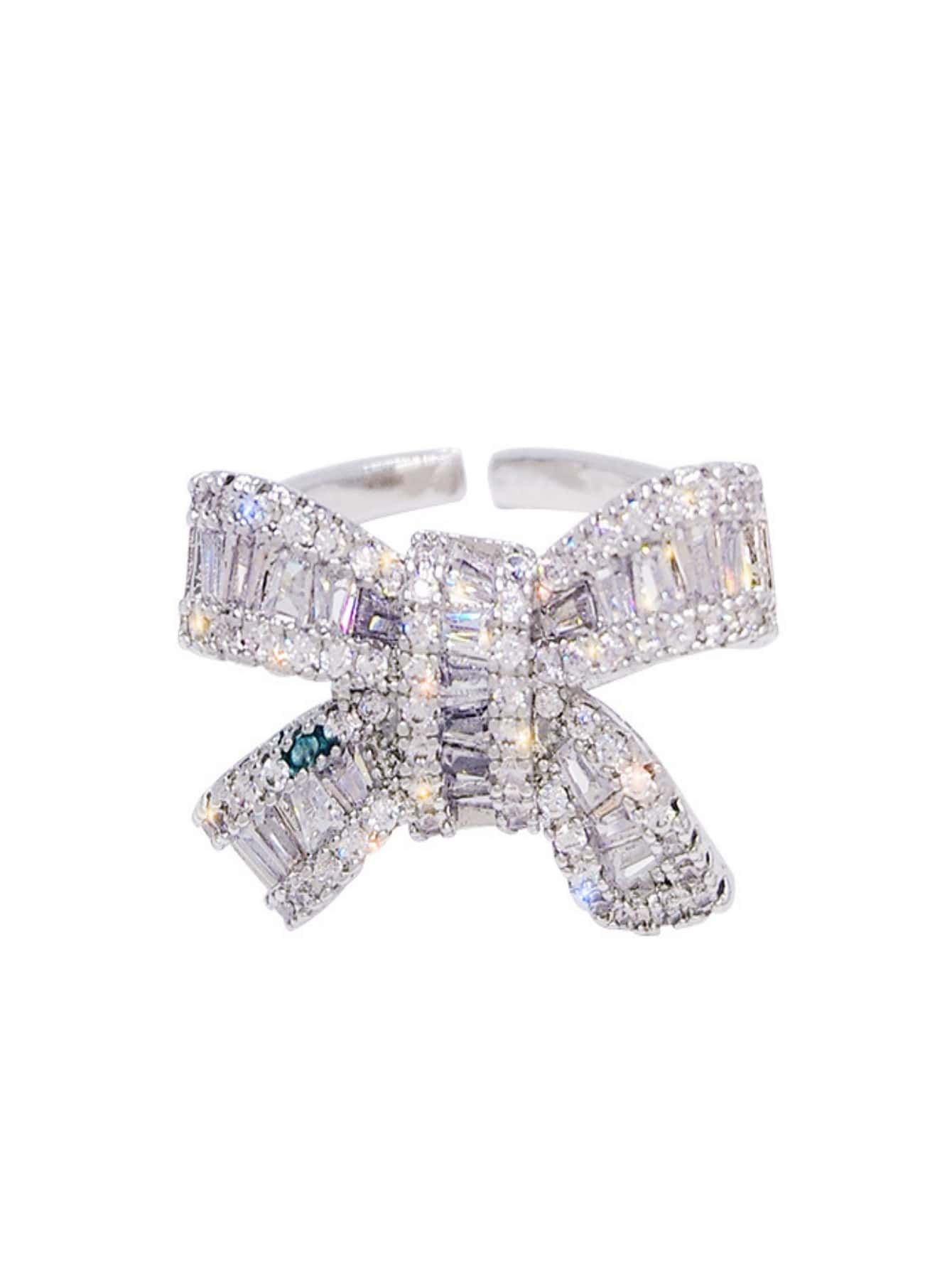 Rhinestone Bow Decor Cuff Ring