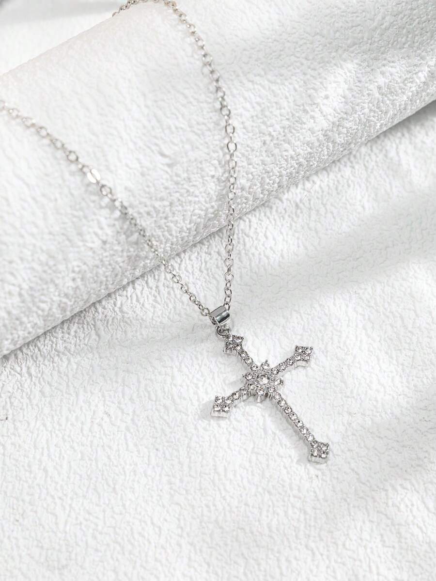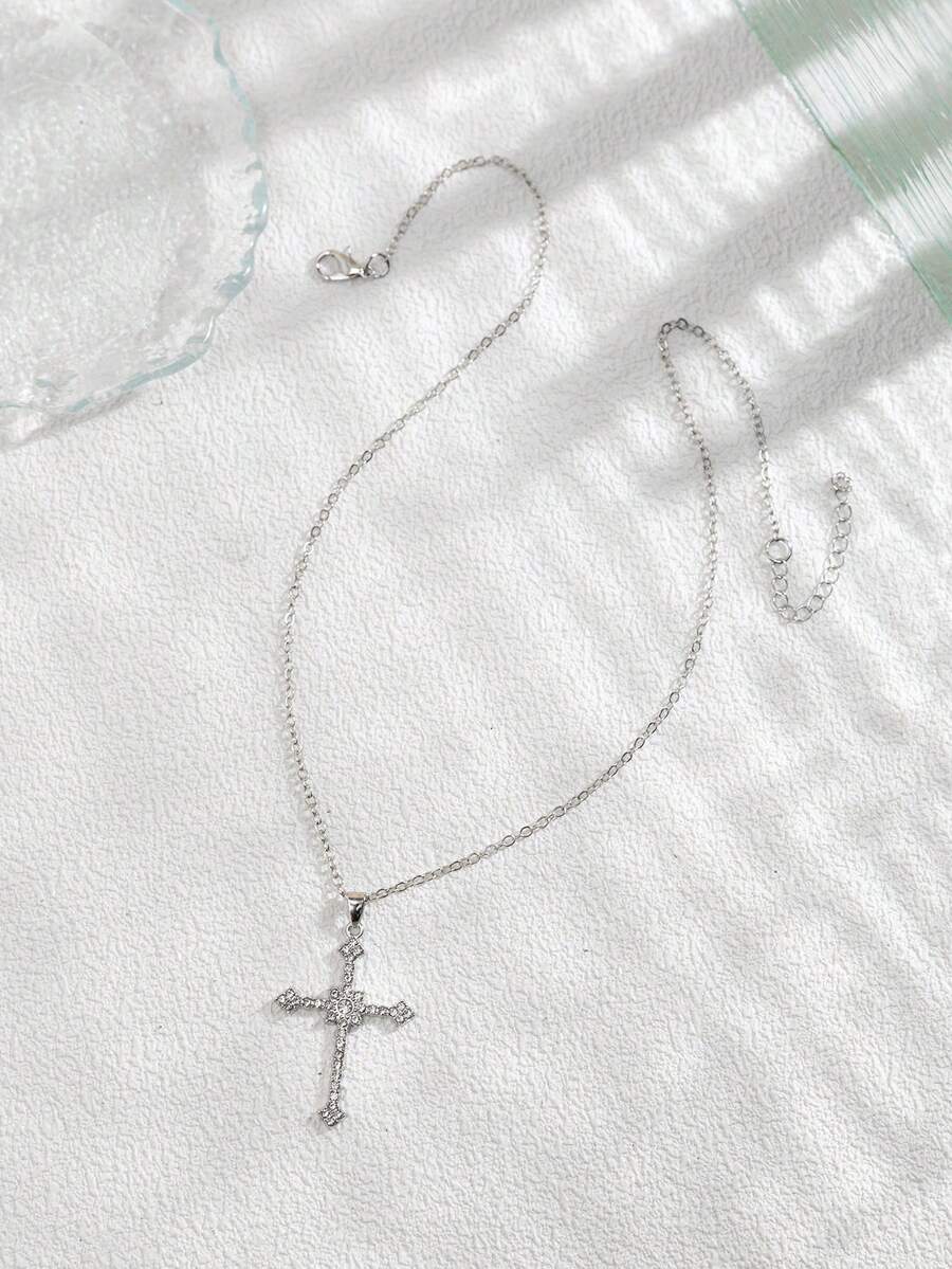 Rhinestone Cross Charm Necklace