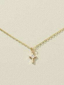 Rhinestone Decor Cross Charm Necklace