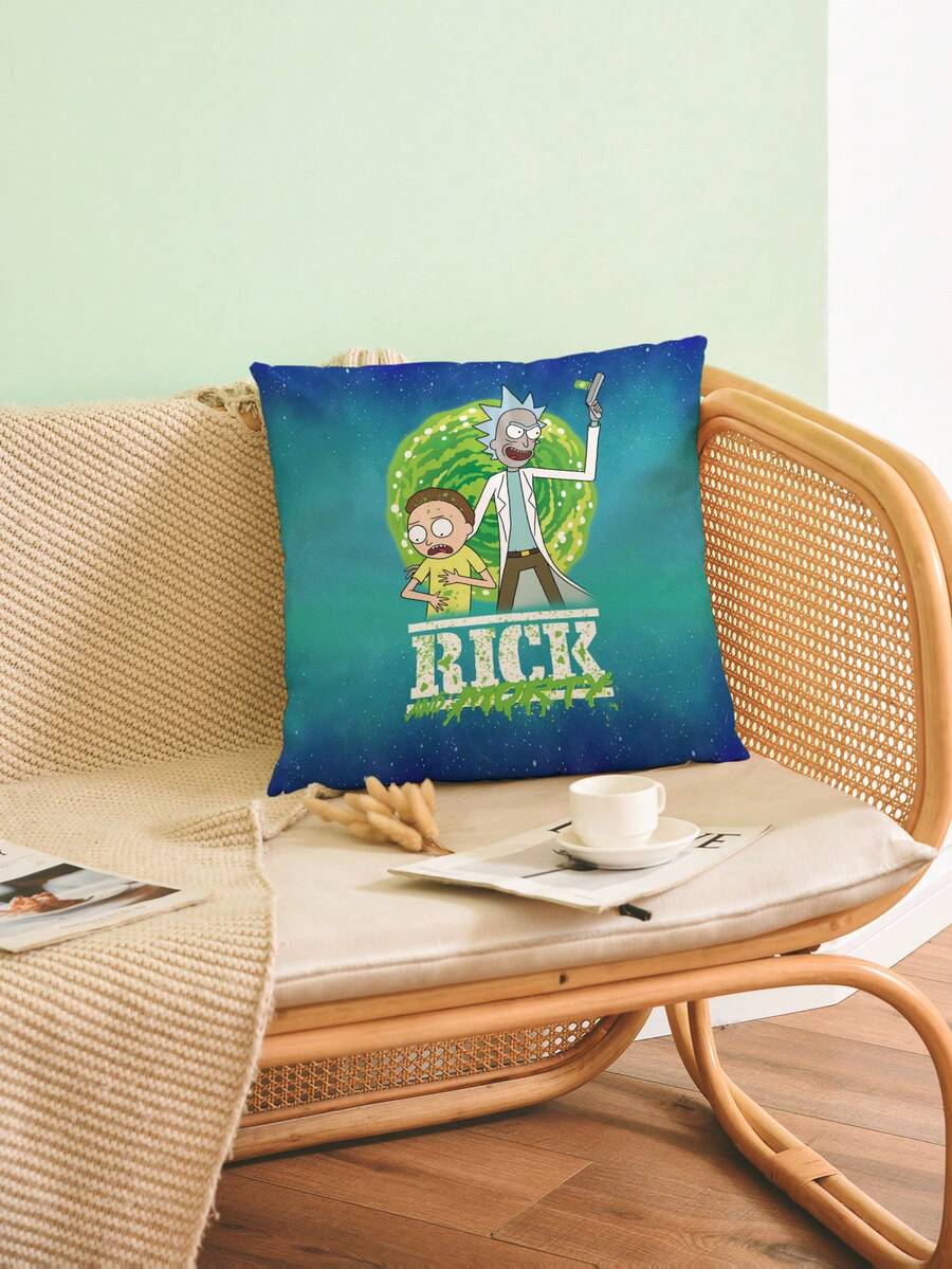 Rick and Morty | ROMWE 1pc Letter Cartoon Figure Graphic Cushion Cover Without Filler,Cute Washable Decorative Square Pillowcase