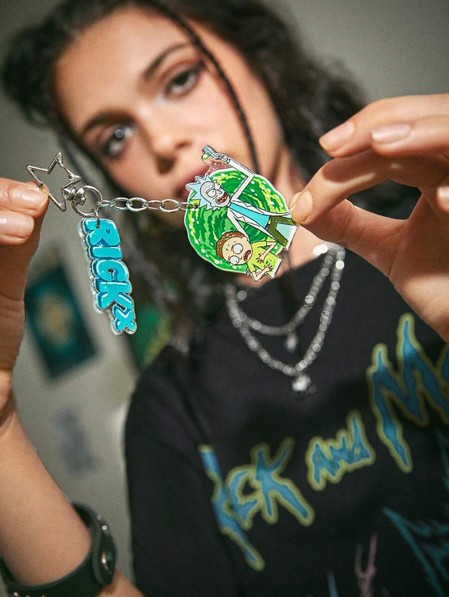 Rick and Morty | ROMWE 1pc Women Cartoon Figure & Letter Charm Acrylic Cute Keychain