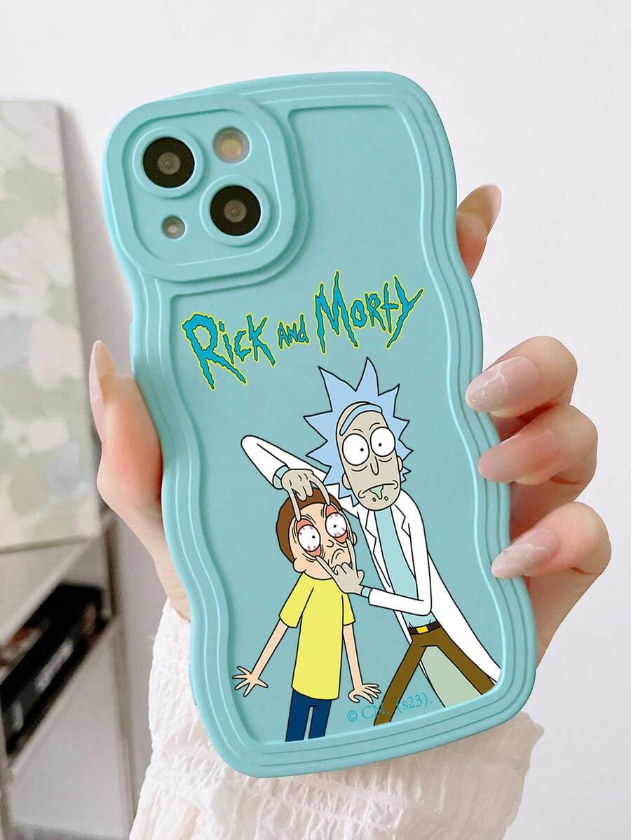 Rick and Morty | ROMWE Cartoon Figure And Letter Graphic Wave Trim Phone Case