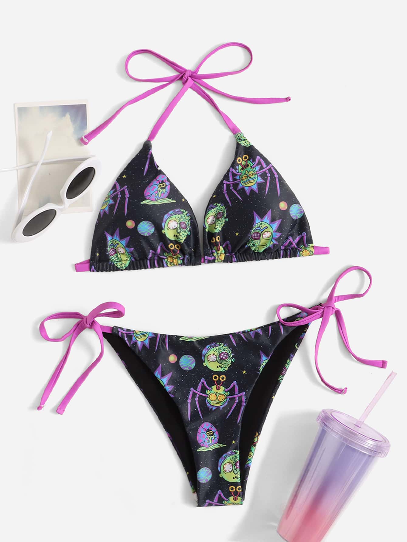 Rick and Morty | ROMWE Cartoon Graphic Tie Side Bikini