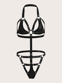 Grunge Punk Ring Linked Harness Teddy Bodysuit