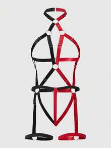 Grunge Punk Ring Linked Harness Teddy Bodysuit
