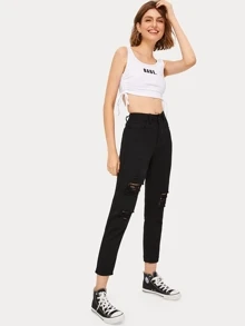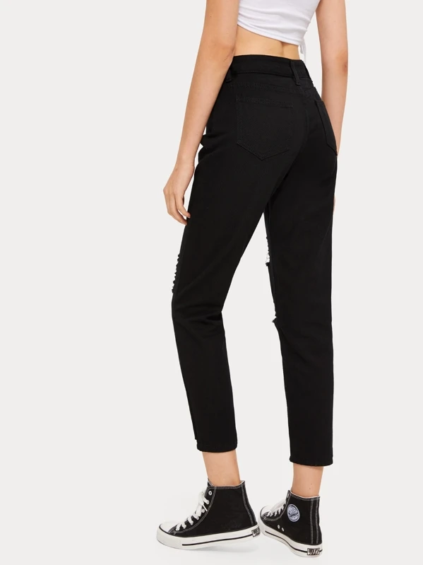 Ripped Cropped Mom Jeans