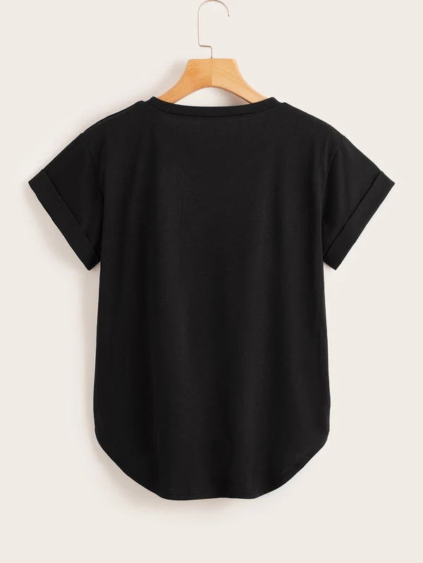Curved Hem Black Tee