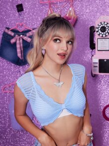 Ruched Hollow Out Scallop Trim Knit Top