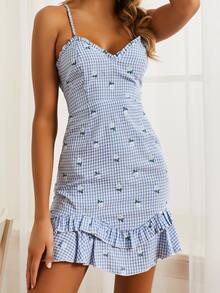 Ruffle Hem Ditsy Floral & Gingham Dress