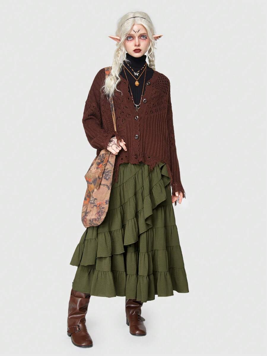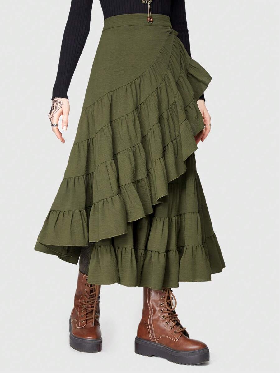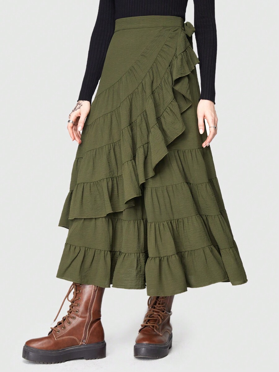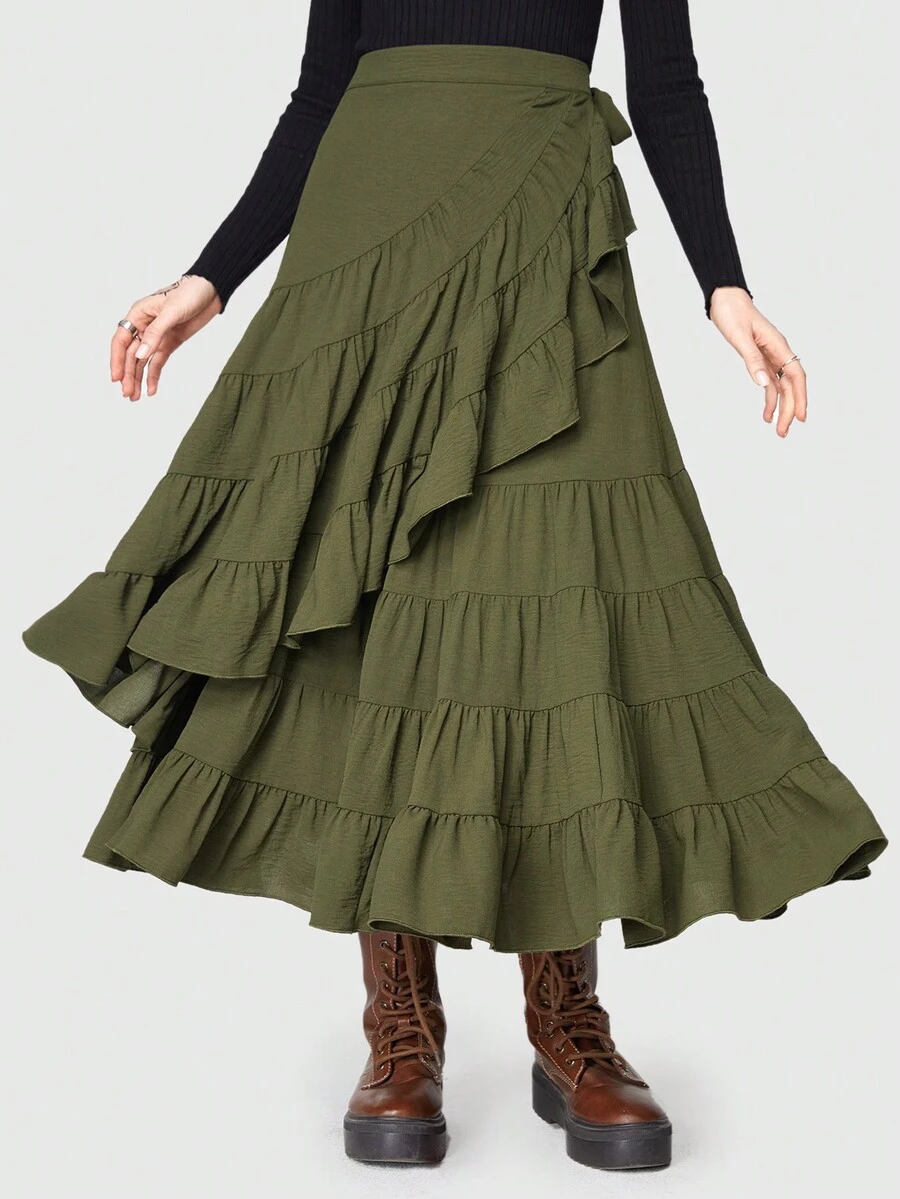 Fairycore Ruffle Trim Tie Side Wrap Skirt