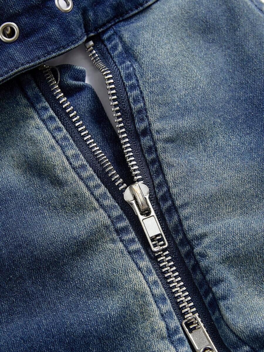 SHEIN x PRISCILA & JIMENA Grunge Punk Women Sleeveless Denim Front Zip Casual Blouse, Suitable For Holiday