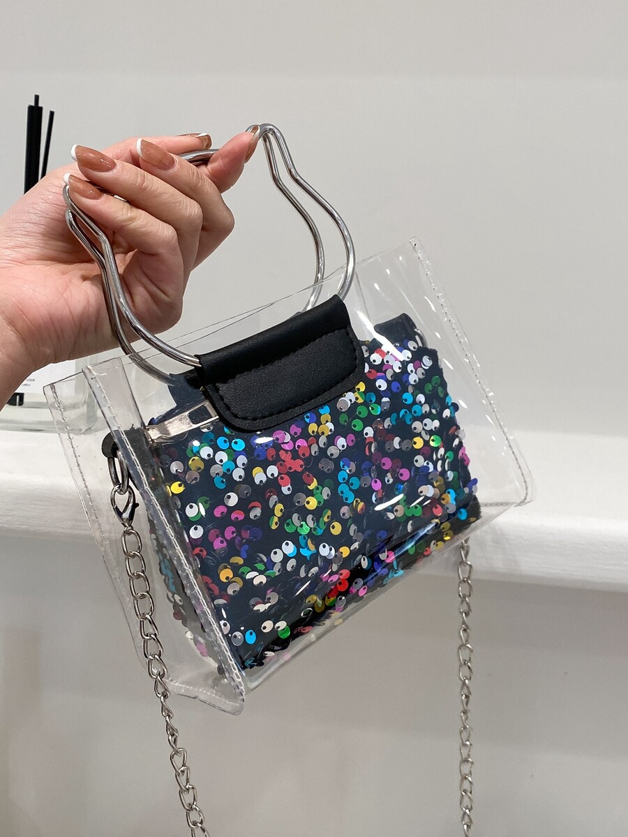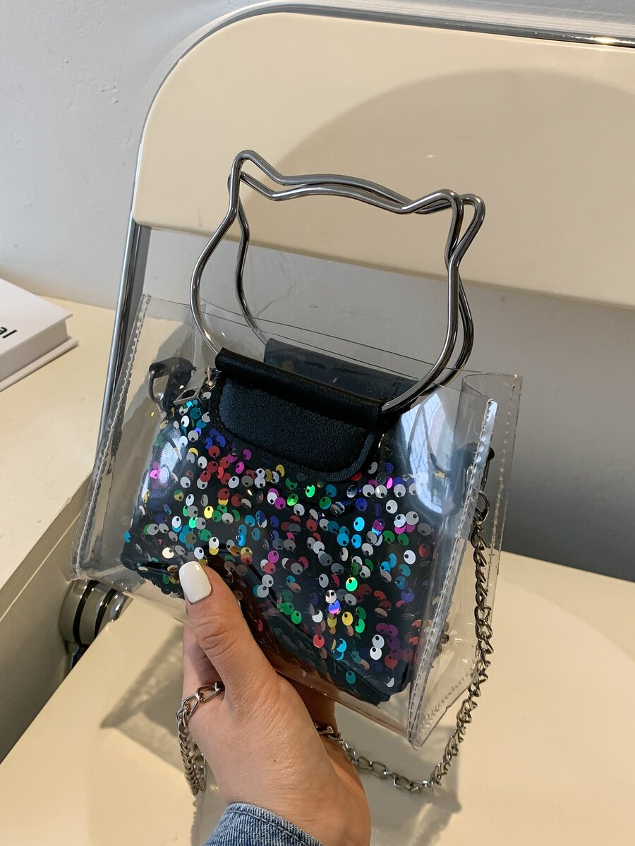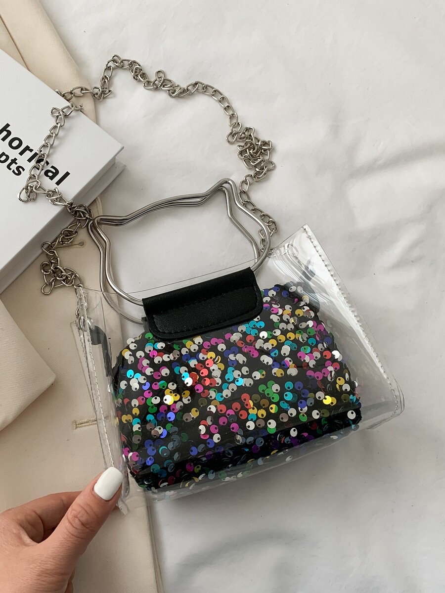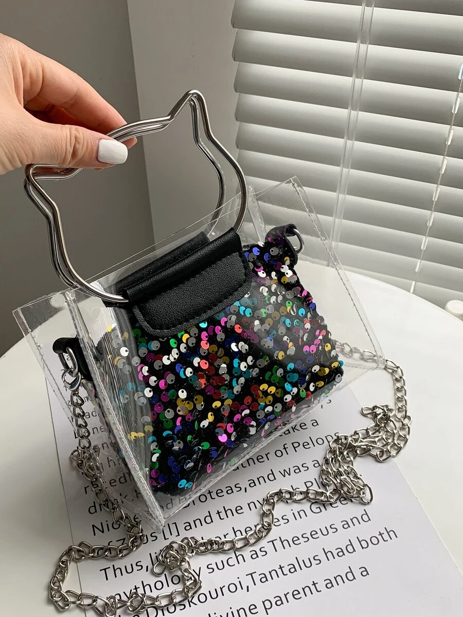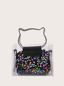 Sequin Cat Ring Satchel Bag