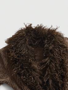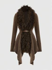 Sexy Furry Ribbed Faux Fur Patchwork Deep V Asymmetric Hem Fitted Women Top